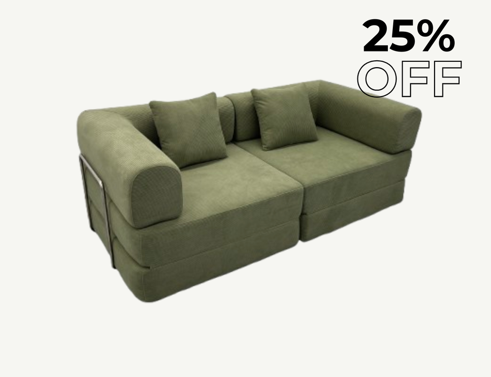 Podés armarlo como sofá en L o usarlo por partes. Se adapta a tu casa y a cómo la usás.